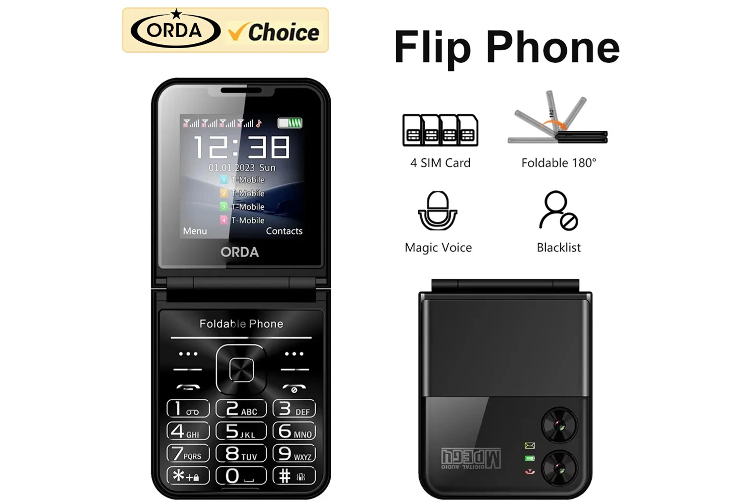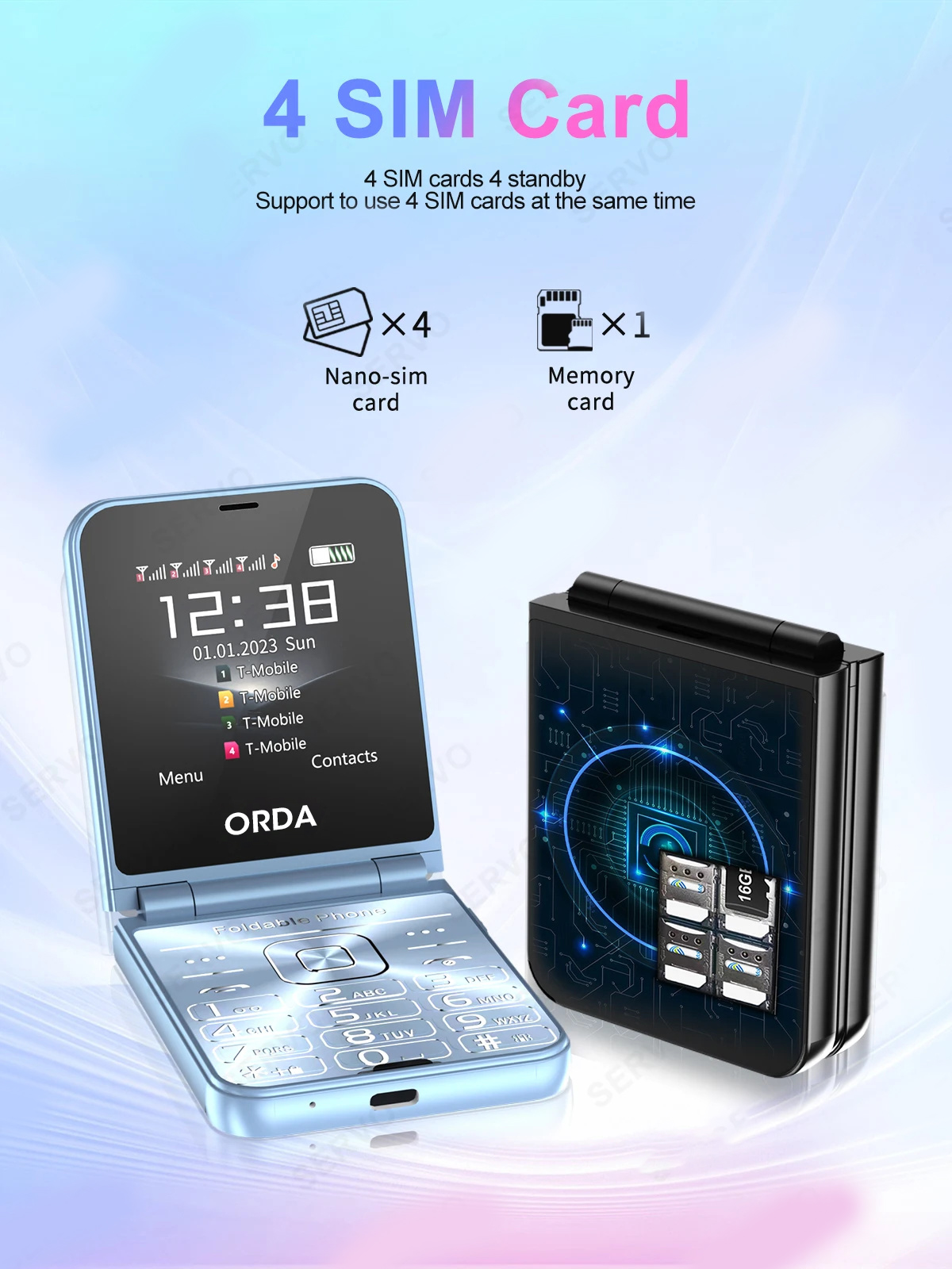 OLV 4 SIM Cards Flip Mobile Phone Magic Voice Blacklist Voice Auto Call Recorder Torch Celulares Unlocked Foldable Cellphone