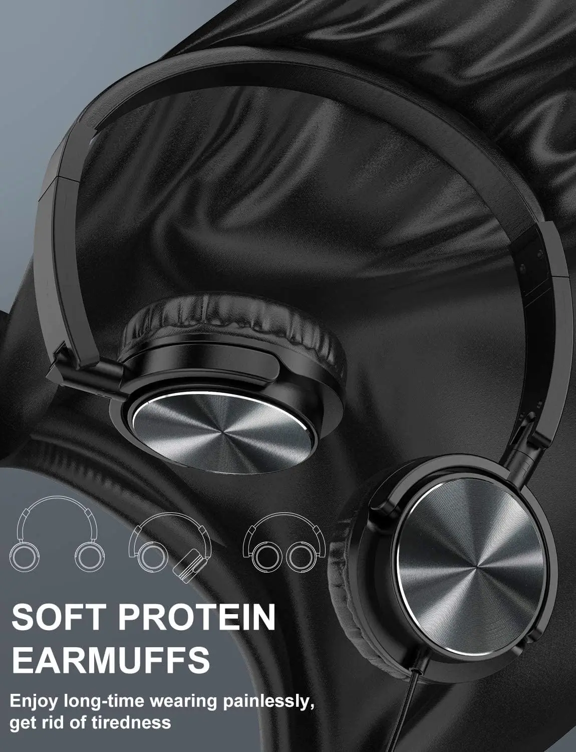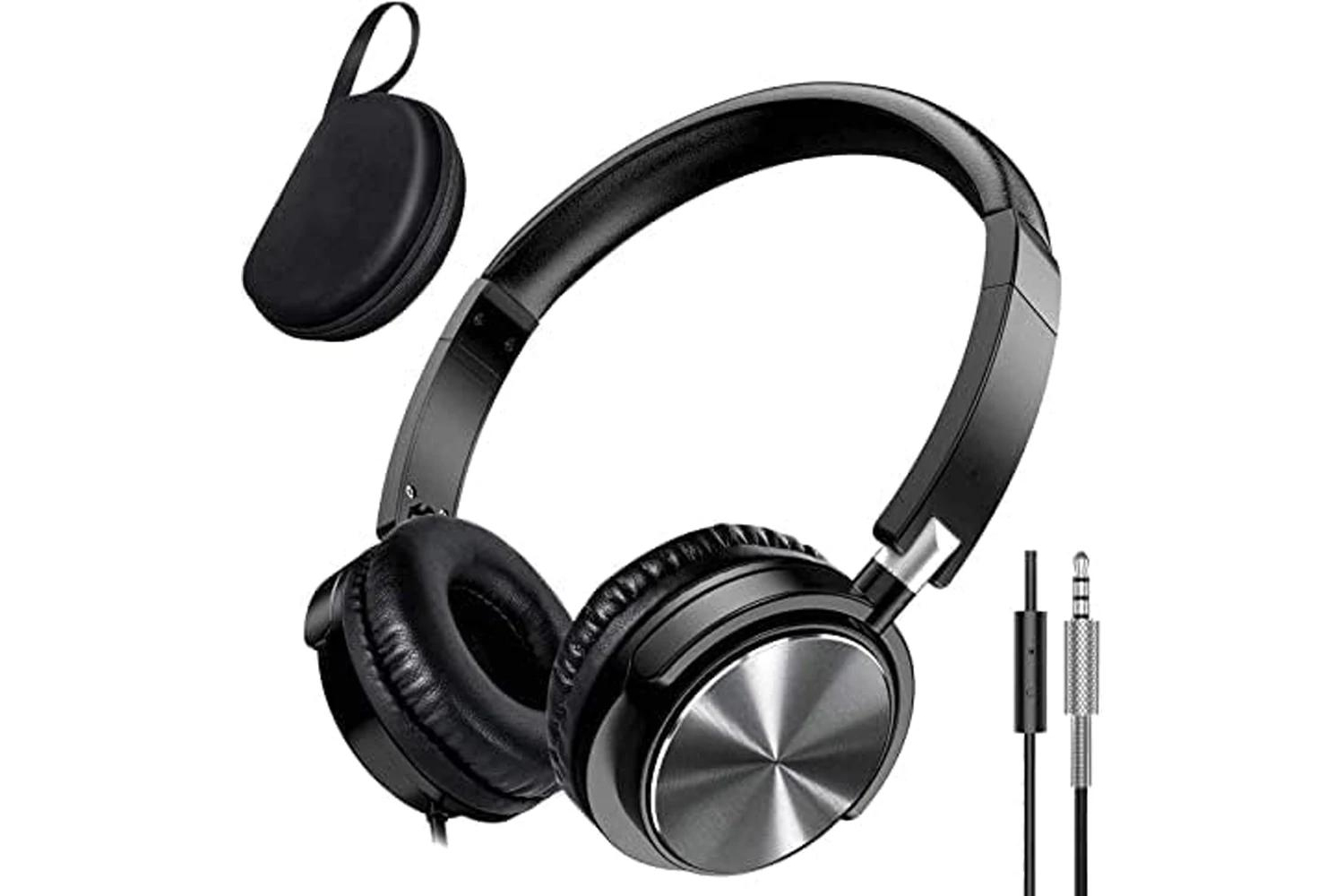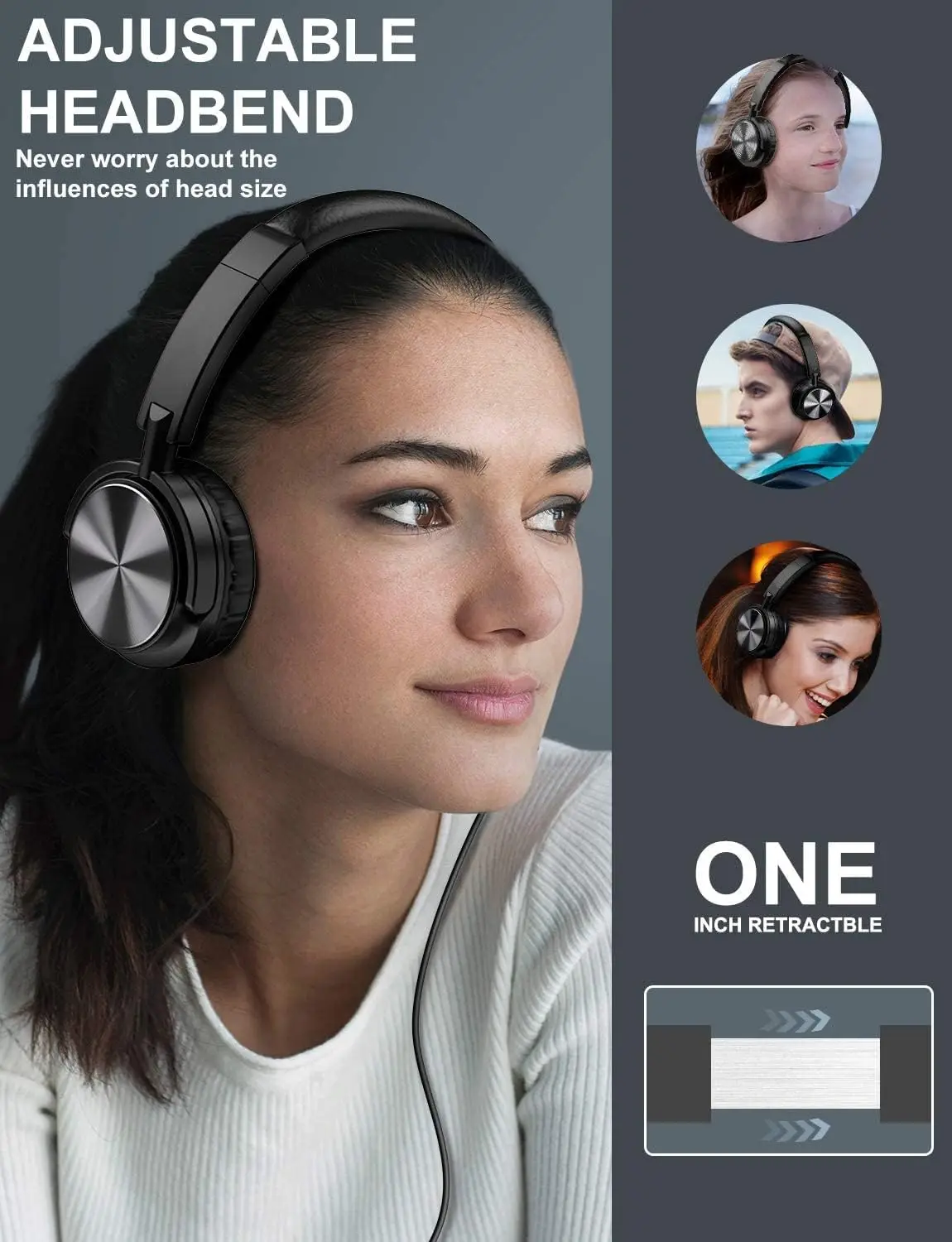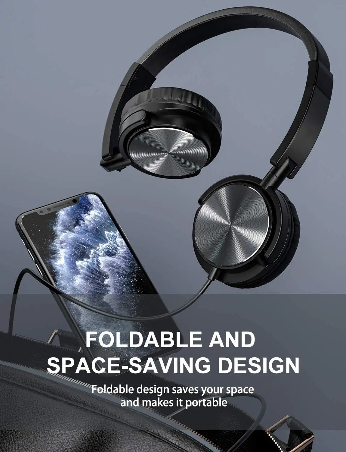 OLV Pocket Foldable Wired Headphones with Deep Bass Adjustable Headband Noise Isolation Inline Mic for Smartphone Chromeb MP3 MP4