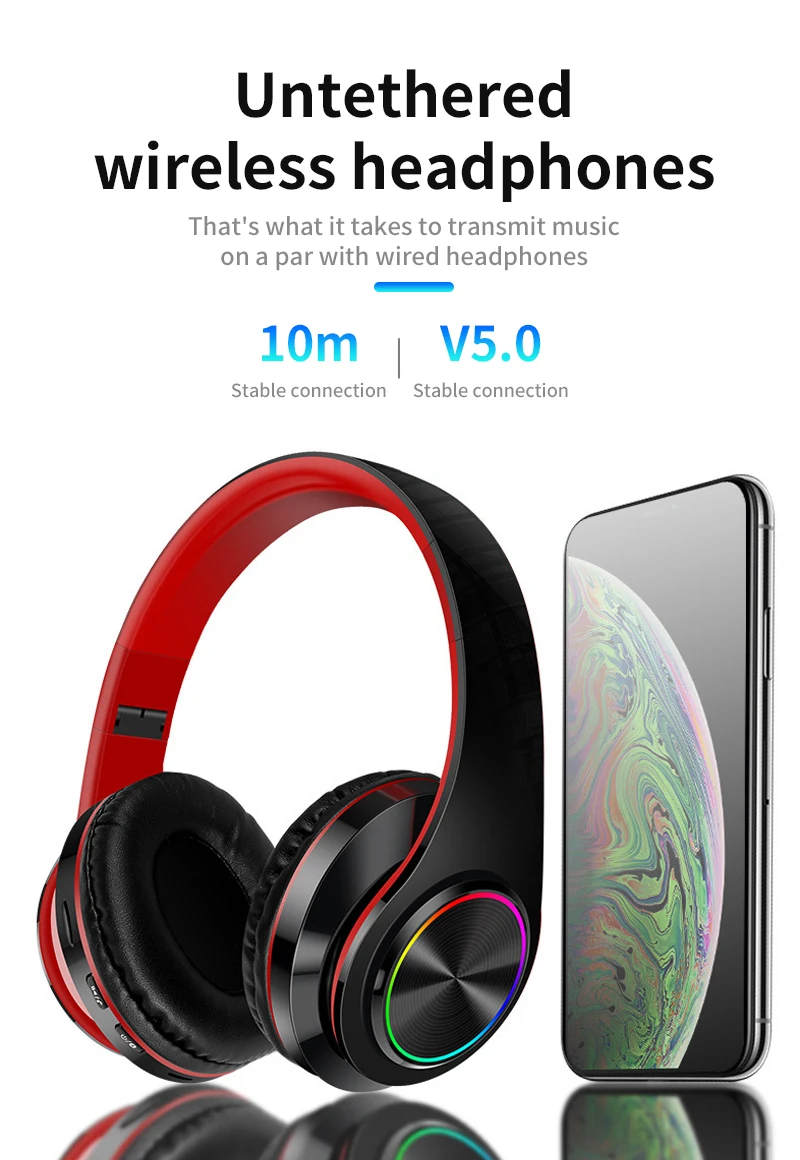 OLV Wireless Bluetooth 5.0 Headphone With Microphone On-Ear Headset Stereo Sound Earphones Sports Gaming Foldable Headphones