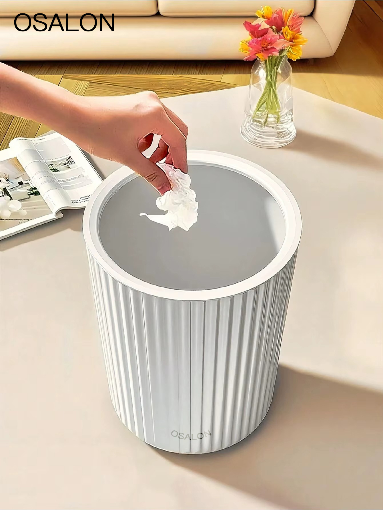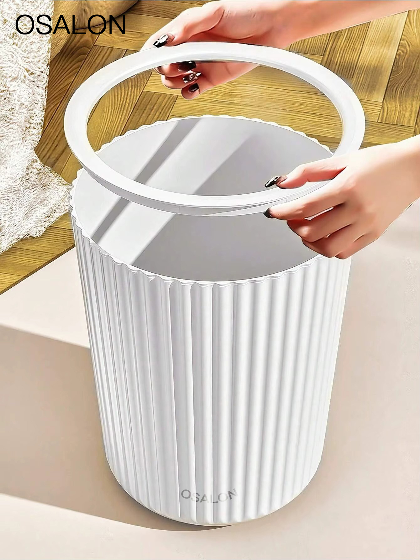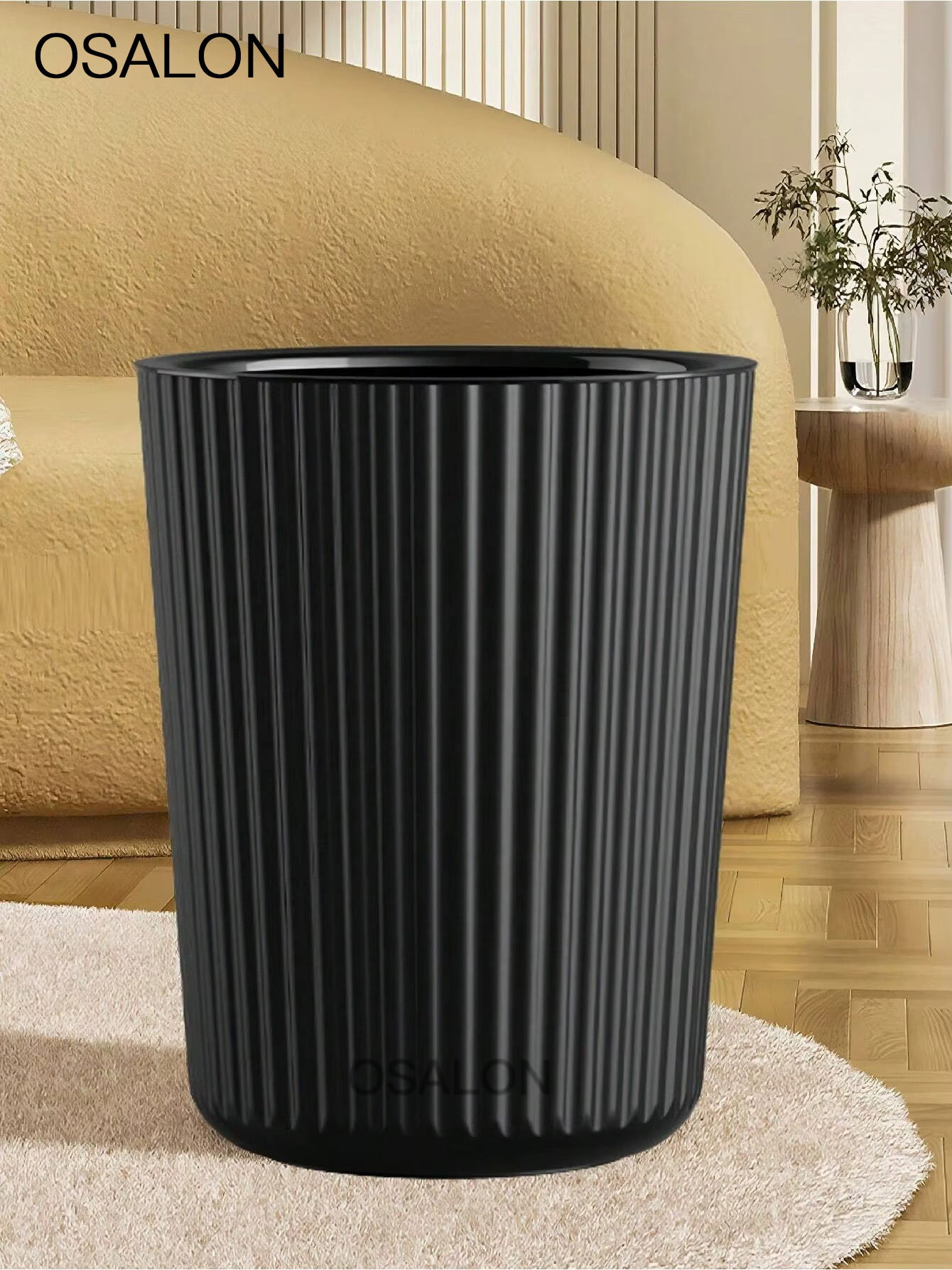 OSALON Simple Striped Trash Can, Paper Basket Bin For Bedroom, Living Room, Bathroom, Waste Management Container